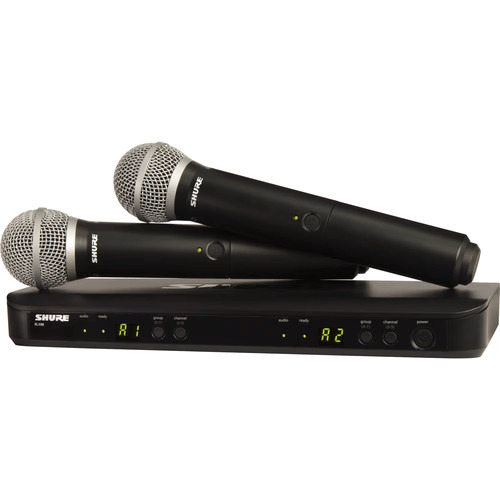 Included components: BLX- 88 Dual receiver, two PG58 handheld transmitters, power Supply, microphone clips, user guide.